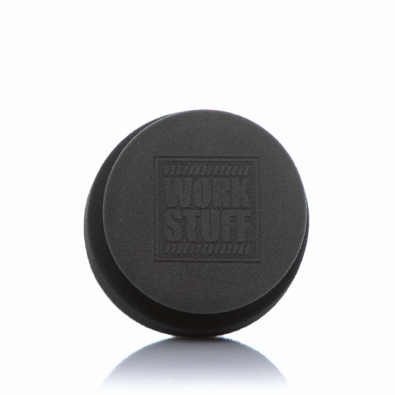 Work Stuff Handy Wax Applicator – poręczny aplikator do wosków wykonany z jednego rodzaju delikatnej gąbki. Dzięki swojej specjalnej strukturze przyspiesza pracę względem klasycznych aplikatorów do wosków. Produkt posiada wytłoczone logo marki WORK STUFF na piance.