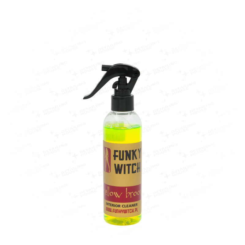 Funky Witch Yellow Broom – to doskonały preparat do czyszczenia wnętrza samochodu. Specjalnie dobrane składniki posiadają odpowiednią moc i są jednocześnie bezpieczne dla wnętrza. Zarówno deska rozdzielcza jak i dywaniki czy tapicerka, skóry, podsufitka to miejsca, gdzie produkt sprawdza się świetnie. Naturalny dodatek owoców cytrusowych powoduje szybkie i bezpieczne rozpuszczanie brudu. Dodatkowo ma atrakcyjny zapach.