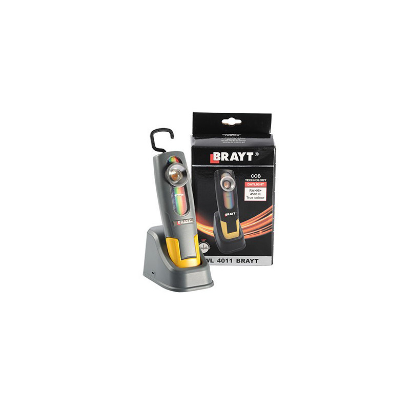 Brayt Inspekcyjna lampa akumulatorowa – przenośna lampa idealnie odtwarzająca warunki światła naturalnego. Nowoczesne źródło LED COB o bardzo wysokim współczynniku oddawania barw RA>95 maksymalnie zbliżonym do światła dziennego, umożliwia perfekcyjne dobranie właściwego koloru i odcienia lakieru m.in. samochodowego. Ułatwia sprawdzenie koloru względem wzornika oraz sprawdzenie samego pokrycia. W świetle tej lampy łatwo można wykryć najmniejsze defekty powłoki lakierniczej, takie jak plamy, hologramy czy przegrzanie powierzchni.