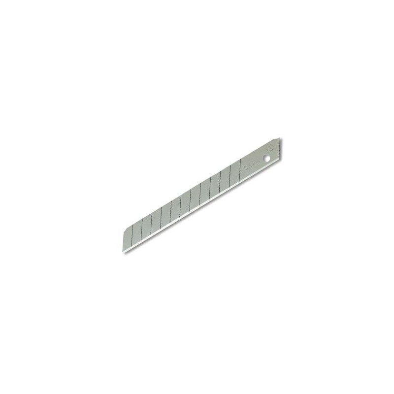 Standardowe ostrze OLFA o szerokości 9 mm. Dzięki zastosowaniu stali narzędziowej o odpowiednio dobranych parametrach i precyzyjnemu ostrzeniu uzyskano ostrze tnące łatwo, dokładnie i wyjątkowo trwałe. Ostrza segmentowe są nacięte pod kątem 59° wynikającym z naturalnej pozycji, jaką przyjmuje dłoń w trakcie cięcia, ułatwiając równocześnie odłamywanie segmentów. Ustalony przez firmę OLFA kąt 59° stał się międzynarodowym standardem ostrzy odłamywanych.