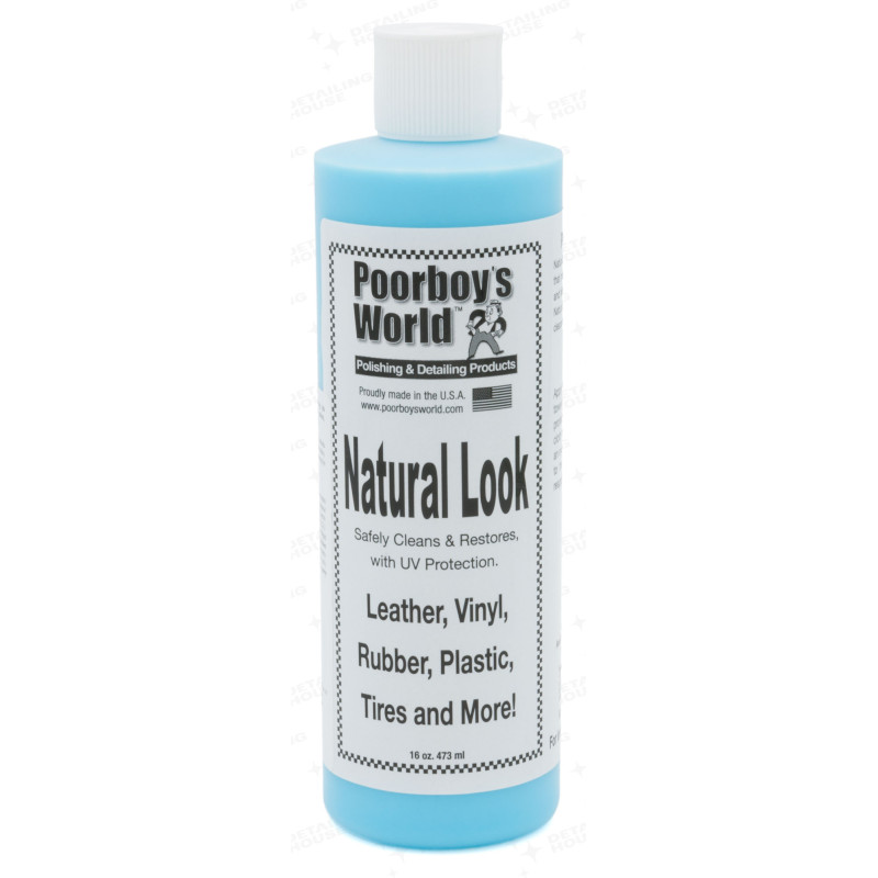 Poorboy's World Natural Look – to środek pielęgnacyjny oparty na bazie wody. Delikatnie czyści i podkreśla naturalny wygląd powierzchni plastikowych, winylowych oraz gumowych. Pokryta produktem powierzchnia zyskuje barierę ochronną przed szkodliwym promieniowaniem UV. Produkt nie zawiera szkodliwych chemikaliów i niebezpiecznych toksyn przez co nie niszczy powierzchni. Poorboy's World Natural Look pozostawia suchą powierzchnię nie tworząc lepkiej warstwy za to wyraźnie odżywia i nadaje jej zdrowy wygląd. Zapobiega utracie koloru i zabezpiecza powierzchnię przed powstawaniem drobnych pęknięć i złuszczeń.