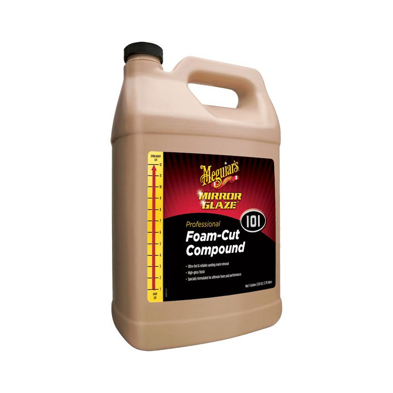 Meguiar’s Foam Cut Compound stosuje udoskonaloną technologię Super Micro Abrasive w połączeniu z produktami Soft Buff Foam Compounding Pad oraz Easy Buff Backing Plate, aby zapewnić ultra szybkie i skuteczne usuwanie śladów szlifowania, tworząc przy tym wysoki połysk.