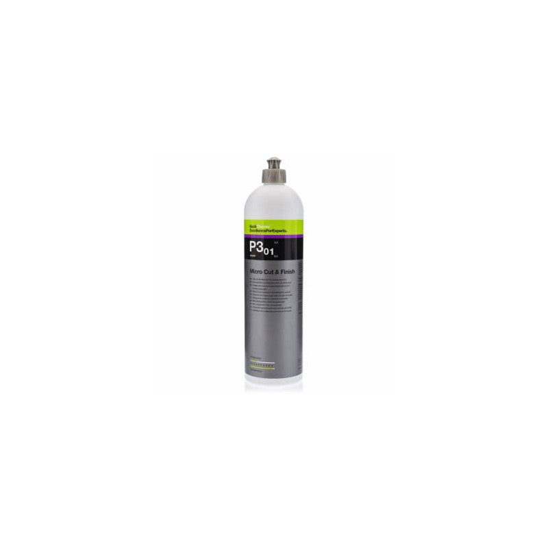Koch Chemie P3.01 Micro Cut & Finish jest najnowszej generacji pastą polerską przeznaczoną do trwałego usuwania smug, hologramów, drobnych rys i śladów po matowaniu o gradacji P3000 z wszystkich lakierów (w tym odpornych na zarysowania) przy jednoczesnym długotrwałym zabezpieczeniu z wysokim stopniem połysku i gładkością wykończenia.