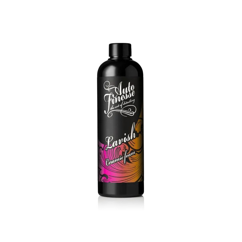 Auto Finesse Lavish Ceramic Foam – to zaawansowana technologicznie piana aktywna, która jest produktem innowacyjnym w dziedzinie powłok SiO2. Wysoce pieniąca formuła sprawia, że nałożenie hydrofobowej warstwy ochronnej w postaci ceramiki staje się niezwykle łatwe i zajmuje tylko kilka sekund. Super szybkie spryskanie samochodu pianą aktywną, spłukanie. Produkt sam po drodze nadaje niezwykłego połysku i ochrony. To cała aplikacja produktu Lavish w skrócie.