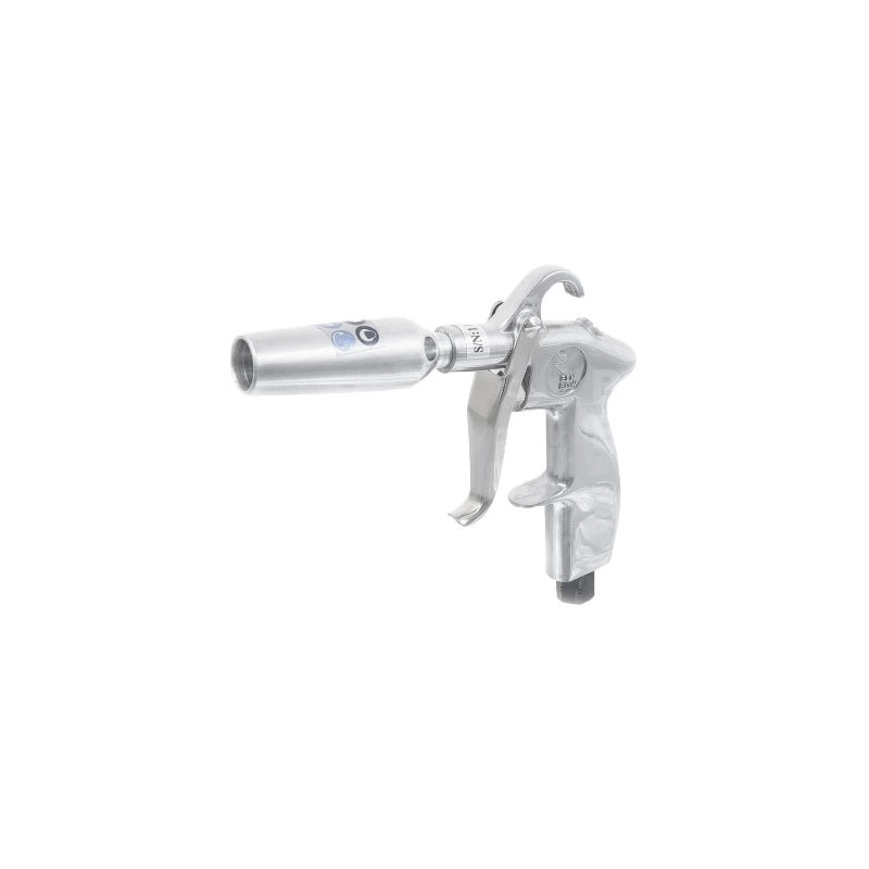 Pistolet do użytku profesjonalnego – doskonale nadaje się do suszenia dużych obszarów (poprzez emisję szerokiego strumienia powietrza), trudno dostępnych miejsc i ogólnych prac warsztatowych, wymagających osuszania wszelakich powierzchni. Wyższy przepływ powietrza – 100% objętości powietrza poprzez zastosowanie dyszy Venturiego. Bezstopniowa regulacja ilości powietrza w dźwigni operacyjnej. Złącze w komplecie.