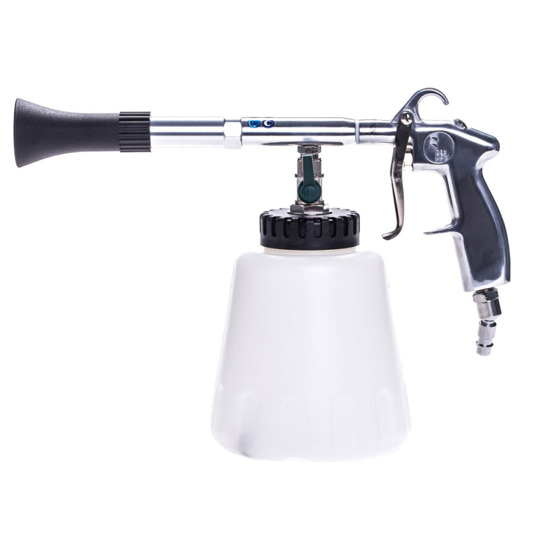 To fantastyczne urządzenie, dzięki któremu szybko wyczyścicie wnętrze samochodu bez szczotkowania. Urządzenie posiada zbiornik na chemię, która podawana jest pod ciśnieniem na czyszczoną powierzchnię. Cleaning Gun Premium posiada metalową rurkę na łożysku, która podaje sprężone powietrze, dzięki czemu urządzenie jest jeszcze mocniejsze od wersji klasycznej z plastikowym wężykiem.