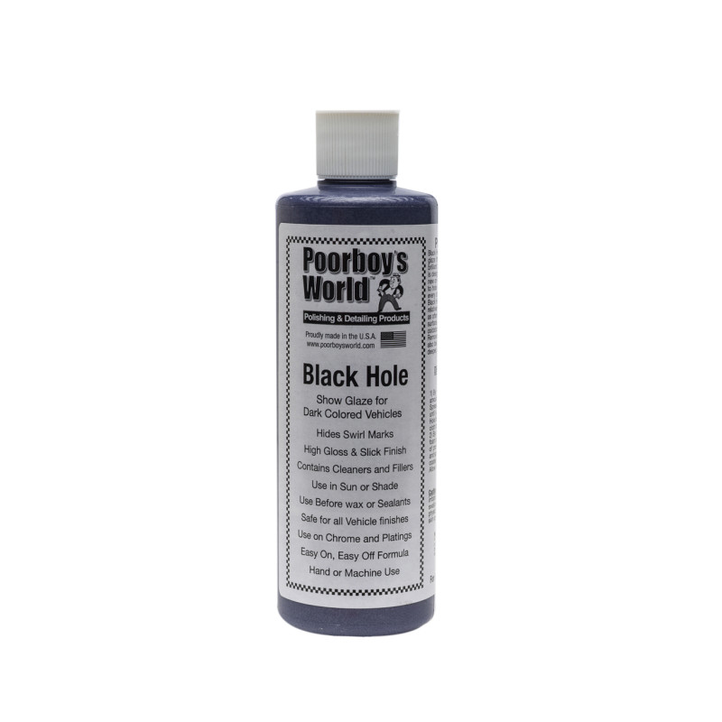 Poorboy's World Black Hole Show Glaze – "czarna dziura" – te dwa słowa w pełni oddają efekt jaki ukazuje się naszym oczom po jego zastosowaniu, zwłaszcza na ciemnych lakierach. Maksymalnie wyciąga głębie na lakierze! Prosty w aplikacji, można go nakładać w pełnym słońcu, zarówno ręcznie jak i maszynowo. Pozostawia przepiękną głębie i efekt "mokrego" lakieru.