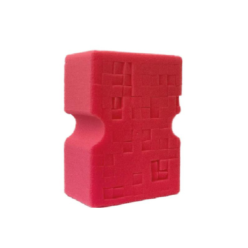 Czerwona gąbka jest bardzo delikatna, bardziej miękka niż niebieska oraz bardziej trwała niż czarna.