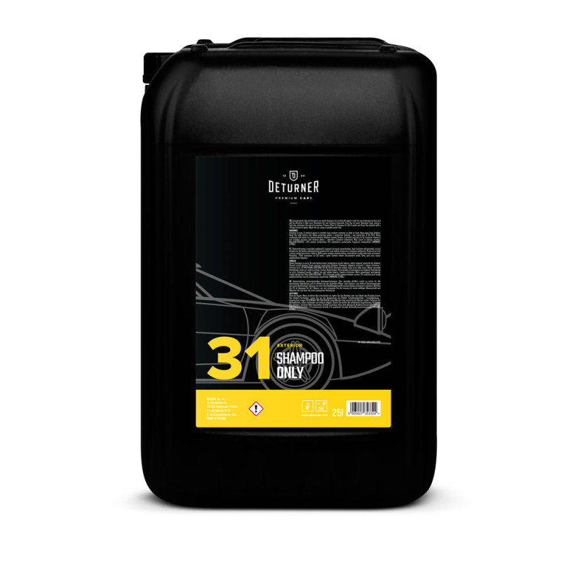Deturner ShampoONLY – skoncentrowany o wysokiej wydajności szampon do mycia samochodów. Jego neutralne pH powoduje, że jest bezpieczny dla każdej zabezpieczonej powierzchni oraz będzie skuteczny w bieżącej pielęgnacji. Rozpuszcza brud i usuwa zanieczyszczenia z lakieru. Obfita piana nadając wysoki poślizg, minimalizuje ryzyko powstania zarysowań. Jest bezpieczny dla skóry dłoni.