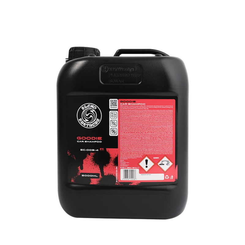 GOODIE Car Shampoo to szampon do ręcznego mycia samochodów, który charakteryzuje się wysokimi właściwościami czyszczącymi. Doskonale sprawdza się w metodzie na dwa wiadra, przy użyciu rękawicy z wełny lub mikrofibry. Posiada neutralne pH, więc jest bezpieczny dla powłok i wosków samochodowych, nie powoduje ich uszkodzeń ani zatykania. W zależności od preferencji może być rozcieńczany w stosunku od 1:100 do 1:300.