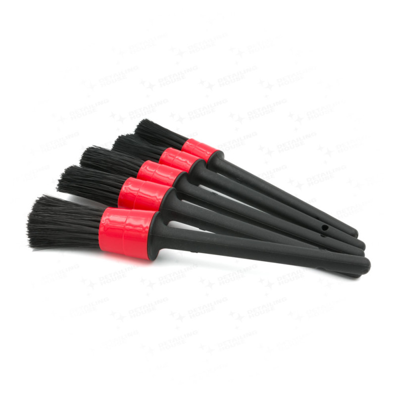 Zestaw pięciu uniwersalnych pędzelków detailingowych.