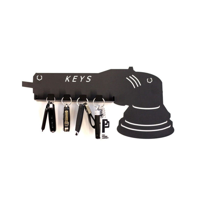 Wieszak na klucze w kształcie polerki z dodatkową półeczką. Wygodne i estetyczne miejsce na przechowywanie kluczyków samochodowych. Może również służyć jako atrakcyjny wieszak na ubrania.