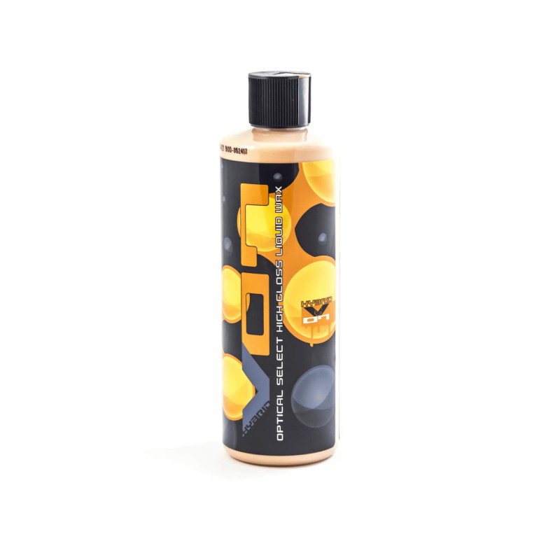 Chemical Guys Hybrid V07 Optical Select High Gloss Liquid Wax – to bardzo efektowny wosk w formie mleczka / pasty, pozostawiający mocny połysk i niezwykłą klarowność lakieru praktycznie bez wysiłku. Wosk hybrydowy, stworzony z połączenia naturalnych i syntetycznych składników. Chroni przed blaknięciem, promieniowaniem UV, ptasimi odchodami. Nadaje mokry i olśniewający połysk. Może być aplikowany maszynowo. Produkt podczas pracy nie utrzymuje się na lakierze, ale wręcz w niego wnika, wiążąc na poziomie nanocząsteczek.